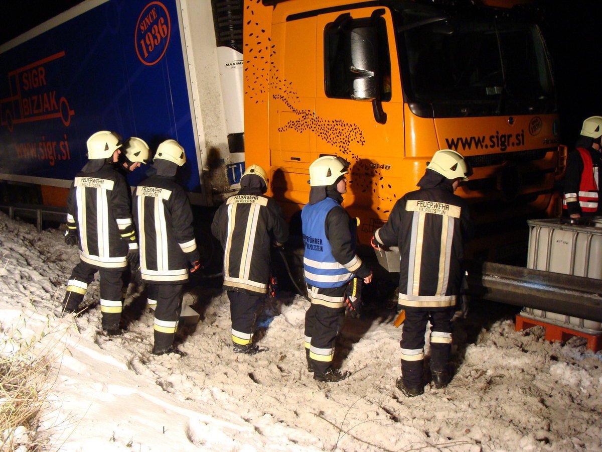 Auf der A9 zwischen den Anschlussstellen Hilpoltstein und Greding kam aus noch ungeklärter Ursache ein LKW von der Fahrbahn ab und riss sich dabei den Kraftstofftank auf. Die Kräfte der Feuerwehr Hilpoltstein fingen den auslaufenden Kraftstoff auf und pumpten den restlichen Treibstoff in einen Behälter um.