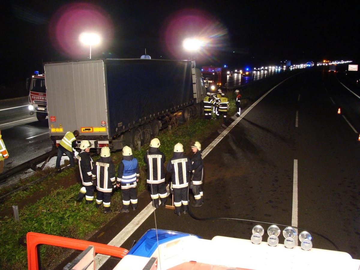 Auf der A9 ereignete sich zwischen den Anschlussstellen Hilpoltstein und Greding ein Verkehrsunfall mit einem LKW. Da sich die Unfallstelle an der Mittelschutzleitplanke befand, forderte die alarmierte Feuerwehr Greding zur Absicherung der Fahrbahn in Richtung München die Feuerwehr Hilpoltstein an. Die Fahrbahn wurde gereinigt sowie die linke und mittlere Fahrspur abgesichert.