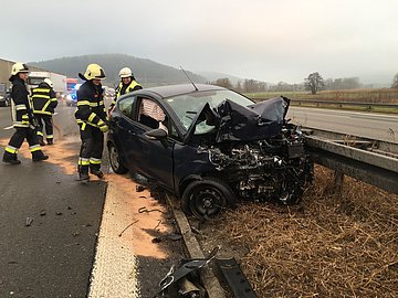Auf der A9, Fahrtrichtung München, ereignete sich ein Verkehrsunfall. Auslaufende Betriebsstoffe wurden gebunden und die Unfallstelle abgesichert.