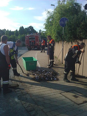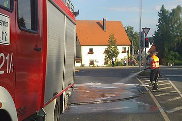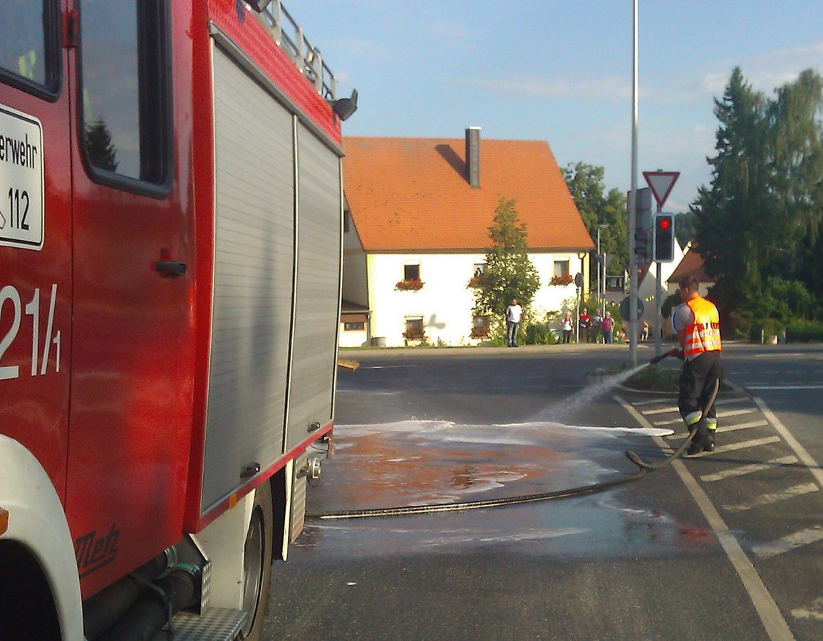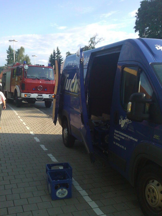 An der Allersberger Straße verlor ein Sprinter ca. 30 Bierkästen. Die Straße musste gereinigt und die Verkehrsabsicherung übernommen werden.