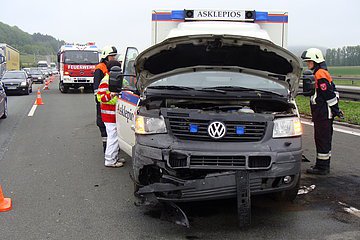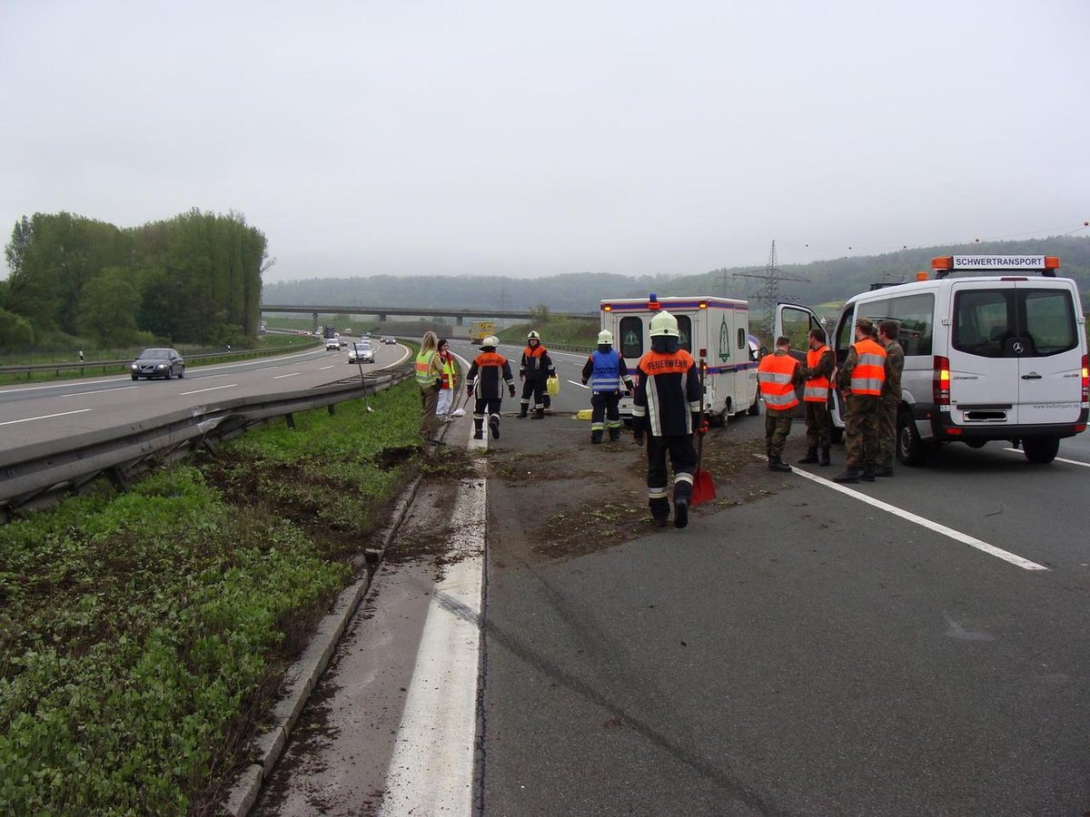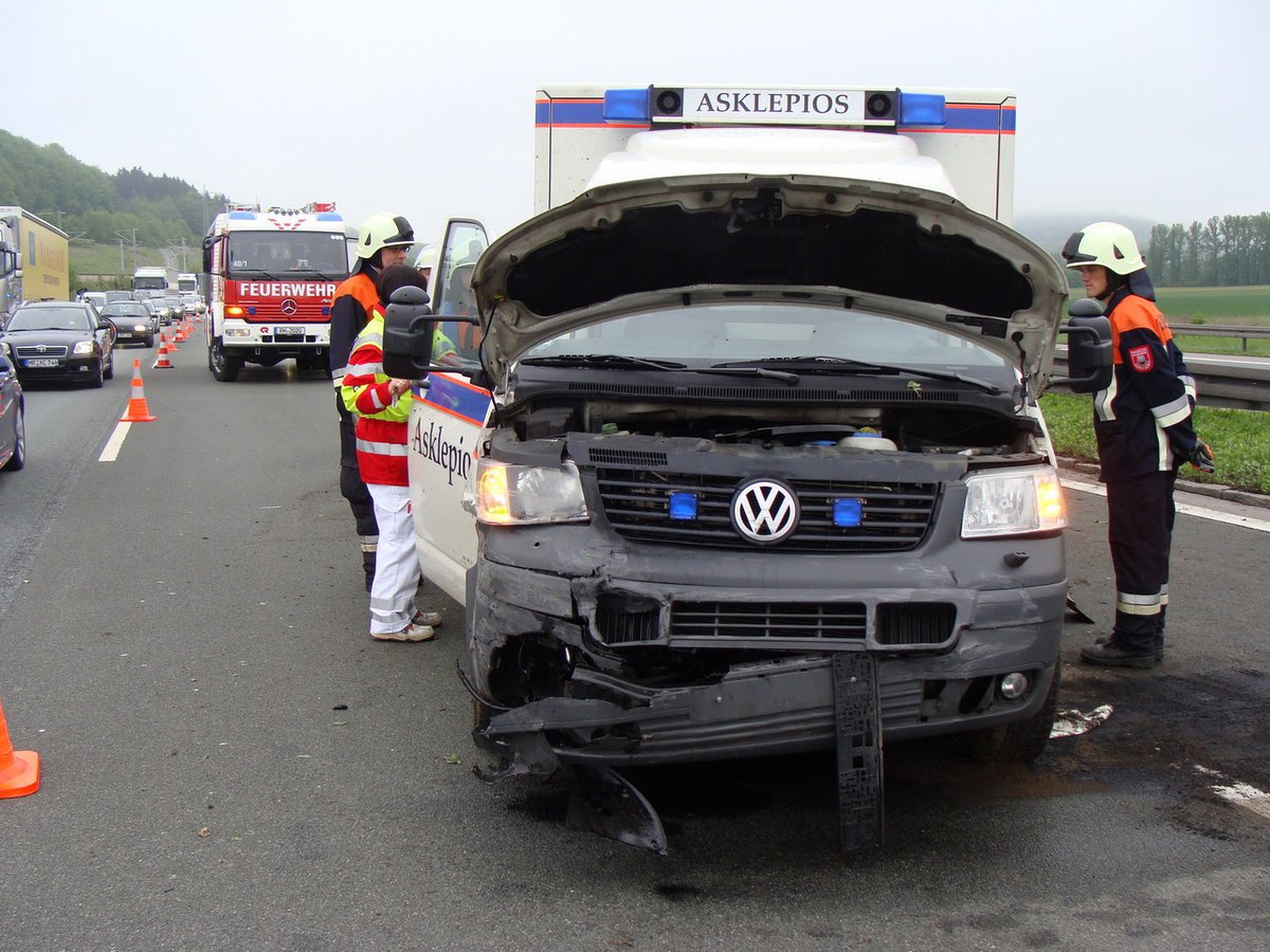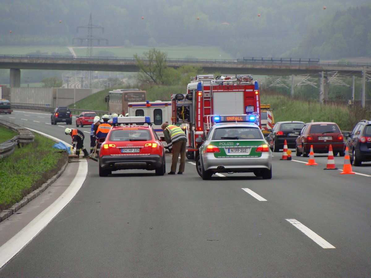 Auf der A9 zwischen Hilpoltstein und Greding in Fahrtrichtung München ereignete sich ein Verkehrsunfall mit einem RTW. Die Feuerwehr Hilpoltstein band die auslaufenden Betriebsstoffe und übernahm die Verkehrsabsicherung.