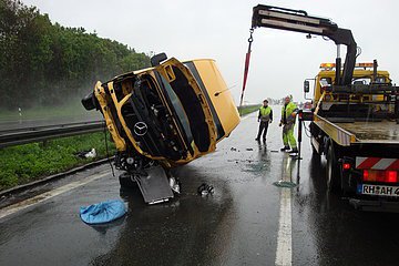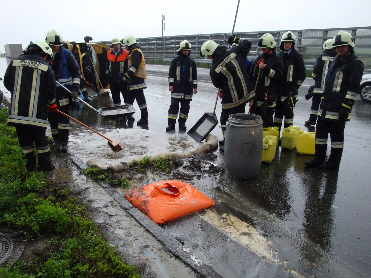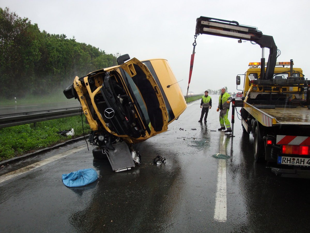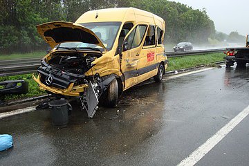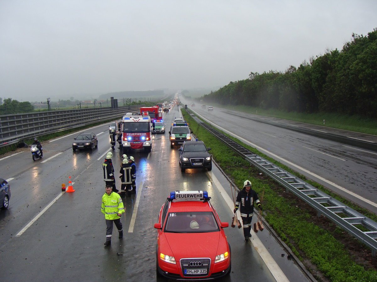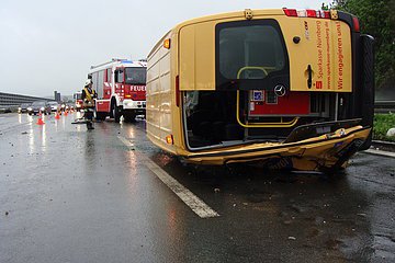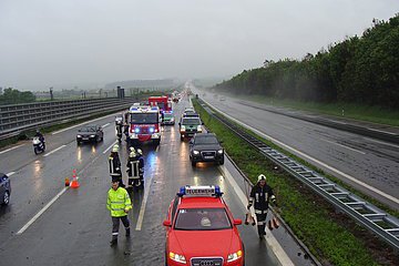 Am Donnerstagmorgen wurde die Feuerwehr Hilpoltstein zu einem Verkehrsunfall auf die A9 Richtung München, mit einer eingeklemmten Person, alarmiert. Ein Sprinter, der mit sieben Personen besetzt war, prallte gegen die rechte Schutzplanke, überschlug sich und kam auf der linken Fahrbahn seitlich zum Liegen. Bereits während der Anfahrt wurde durch die Polizei mitgeteilt, dass keine Person mehr eingeklemmt sei. Die Unfallstelle wurde abgesichert, auslaufendes Öl gebunden und die Fahrbahn gereinigt. Die Autobahn musste kurzzeitig komplett gesperrt werden, da Trümmerteile und Schotter auf allen drei Fahrbahnen verteilt waren.