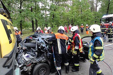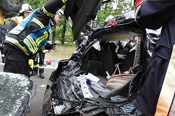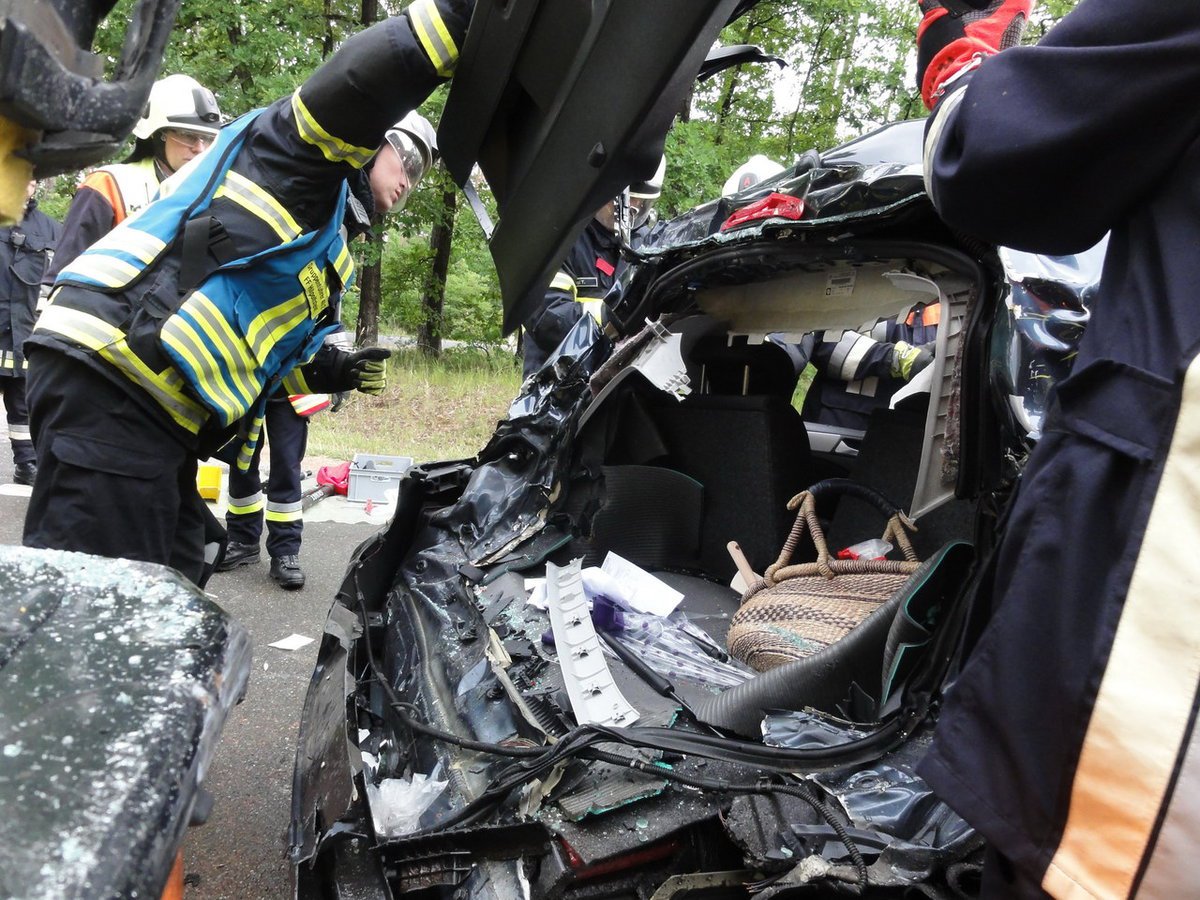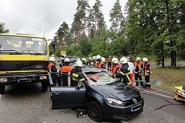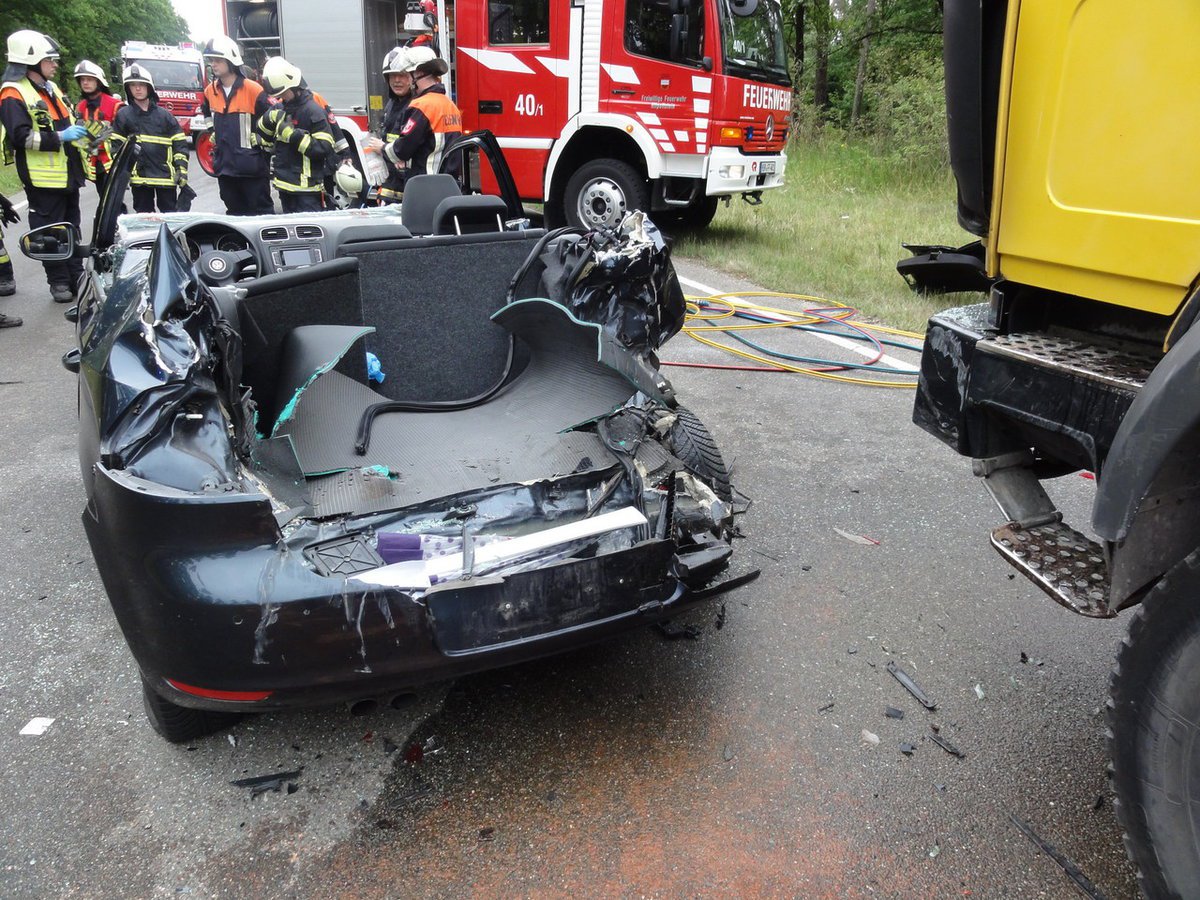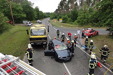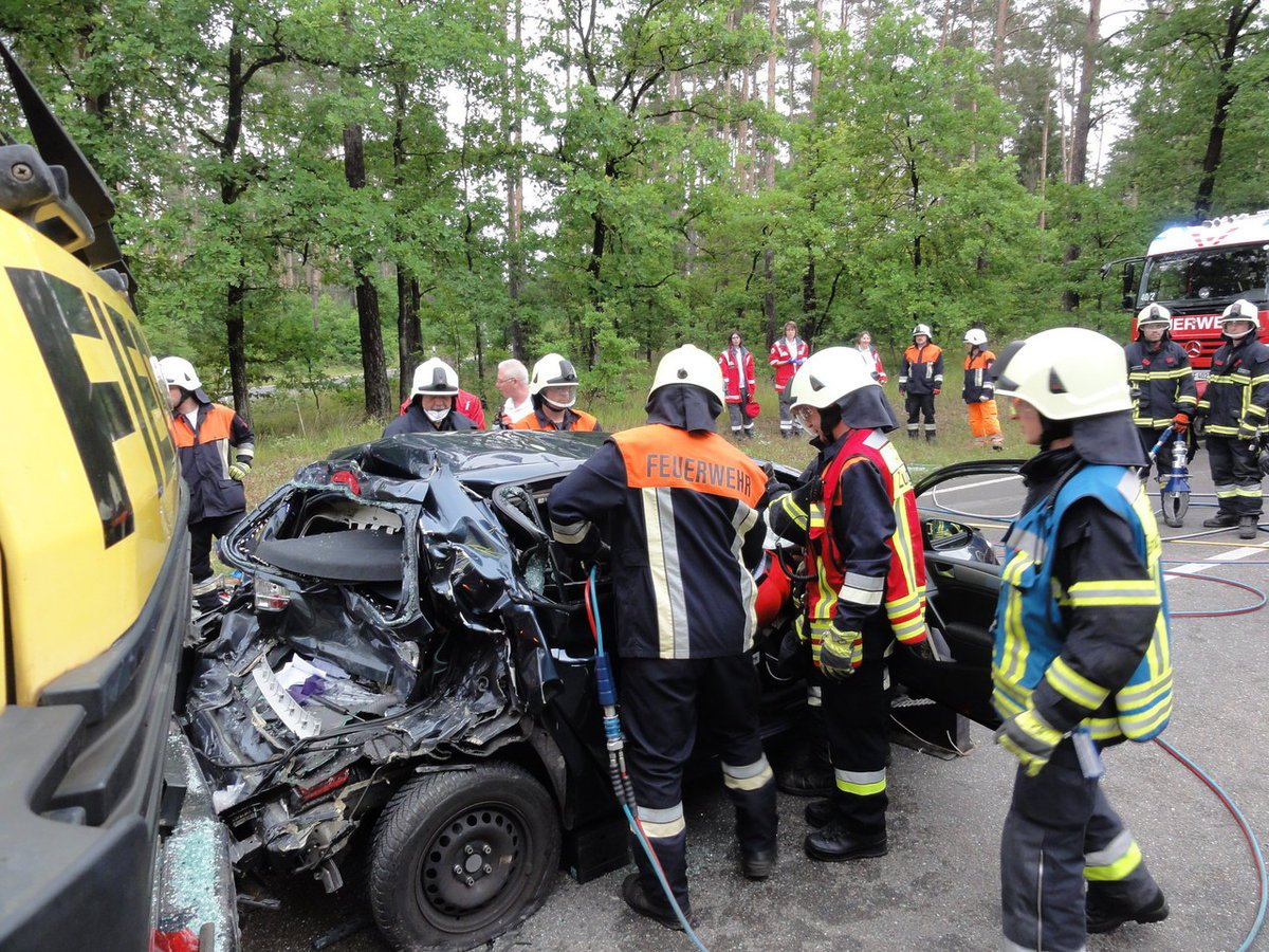 Auf der Staatsstraße St2220, Hilpoltstein - Eckersmühlen, kam es auf Höhe der Kreuzung Haimpfarrich zu einem Verkehrsunfall zwischen einem PKW und einem LKW. Dabei fuhr der LKW nahezu ungebremst in das Heck des stehenden PKW. Nach Absprache mit dem beteiligten Rettungsdienst und dem Notarzt wurde eine schonende Rettung mit Spreizer und Schere vorgenommen. Hierbei wurde zuerst das Dach des PKW´s entfernt um anschließend die Person ohne größere Bewegungen der Wirbelsäule, mittels eines sogenannten "Spineboard", nach oben aus dem Fahrzeug zu befreien. Während des gesamten Einsatzes wurde der Verkehr gemeinsam mit der Feuerwehr Eckersmühlen umgeleitet.