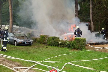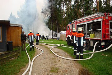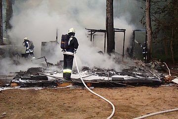 Am Kauerlacher Weiher standen zwei Wohnwägen inklusive Vorzelt in Vollbrand. Mit mehreren C-Rohren sowie unter schwerem Atemschutz wurde zur Brandbekämpfung vorgegangen. In den Wohnwägen befanden sich mehrere Gasflaschen, die geborgen und gekühlt werden mussten. Nachdem die Nachlöscharbeiten beendet waren, konnten die Feuerwehren aus Hilpoltstein, Karm und Meckenhausen die Einsatzstelle wieder verlassen.